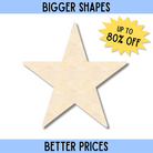 Introducing our "Bigger Better" Collection with bigger shapes at better prices! Create endless possibilities with our Unfinished Wood Star Shape, perfect for DIY crafting.