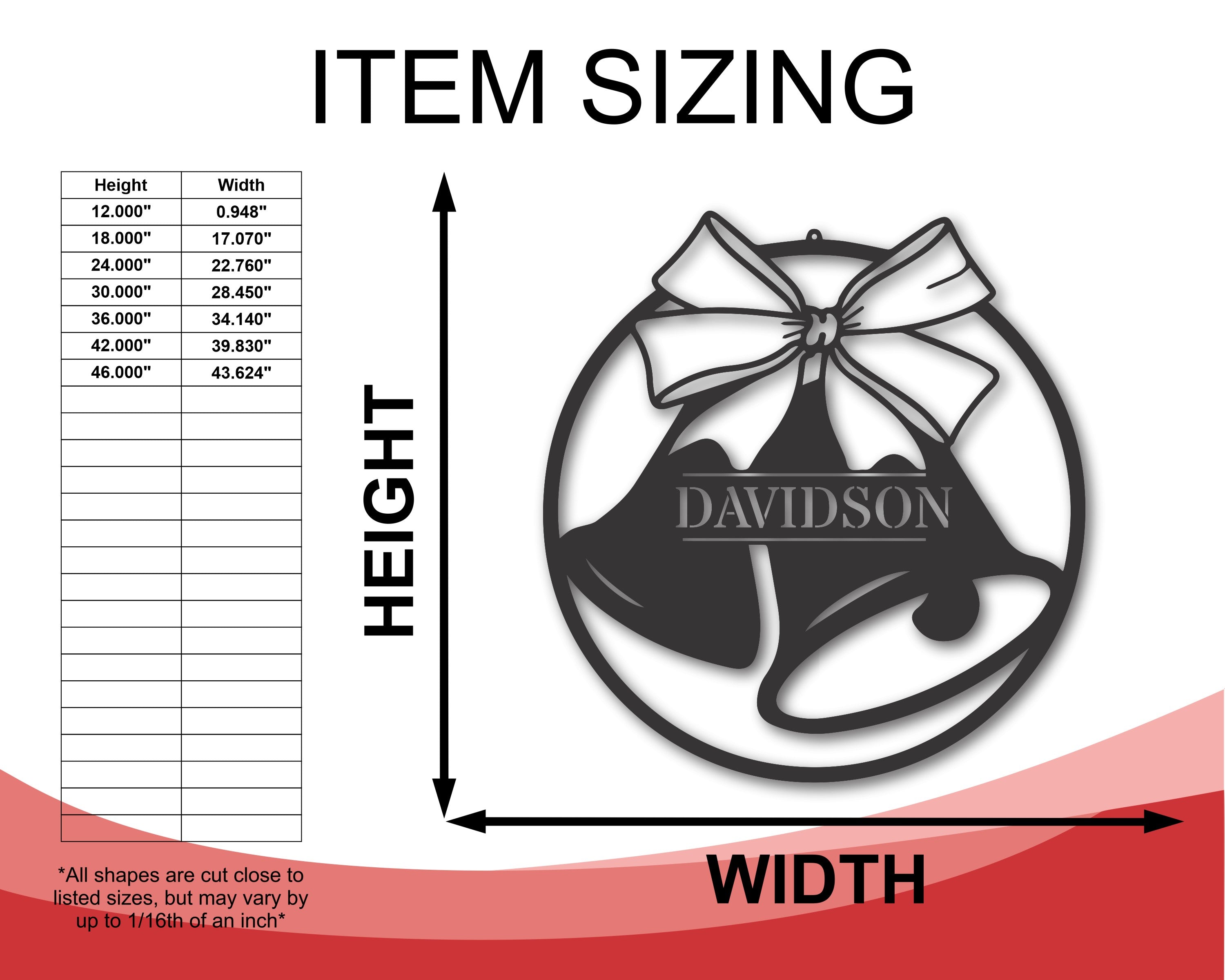 Metal Christmas Bells Wall Art | Custom Metal Christmas Bells Name Sign | Custom Christmas Family Name Sign | 15 color Options