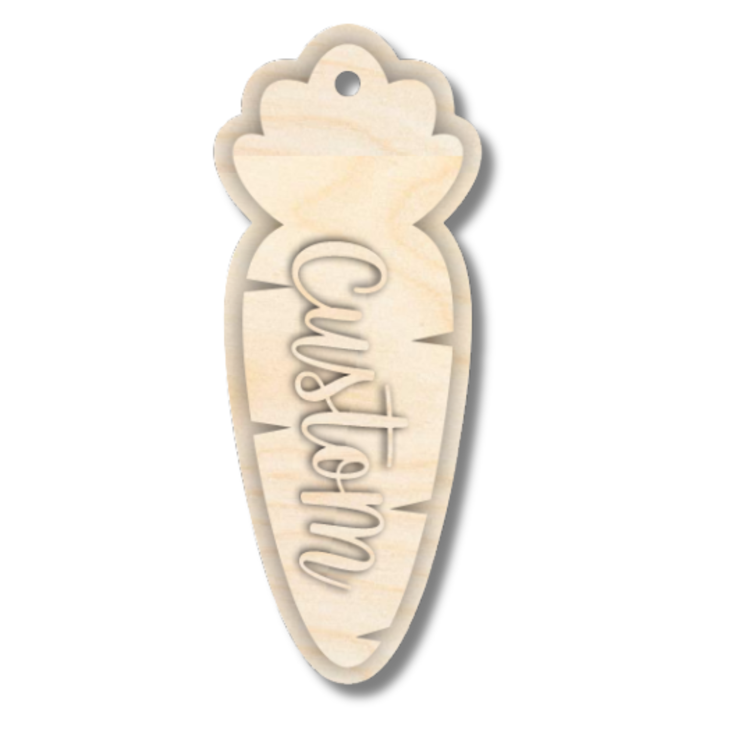Unfinished Wood Layered Custom Name Carrot Gift Tags | 4 Options | 3 Piece | 4"-6" Tall | 1/8" Wood | Wood Craft DIY