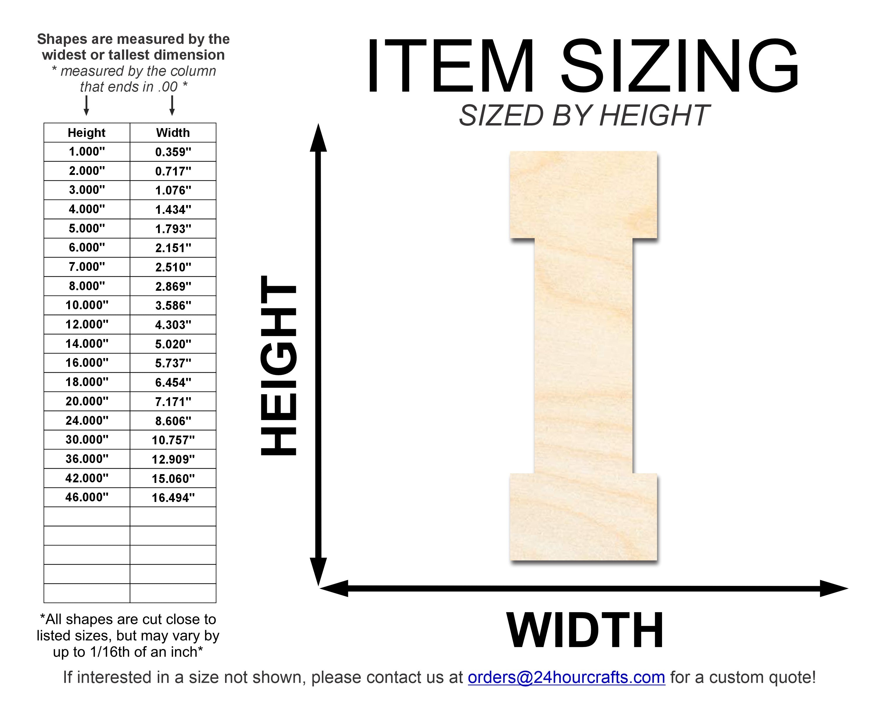 Unfinished Wood Varsity Team Font - I Shape | DIY Craft Cutout | up to 46" DIY