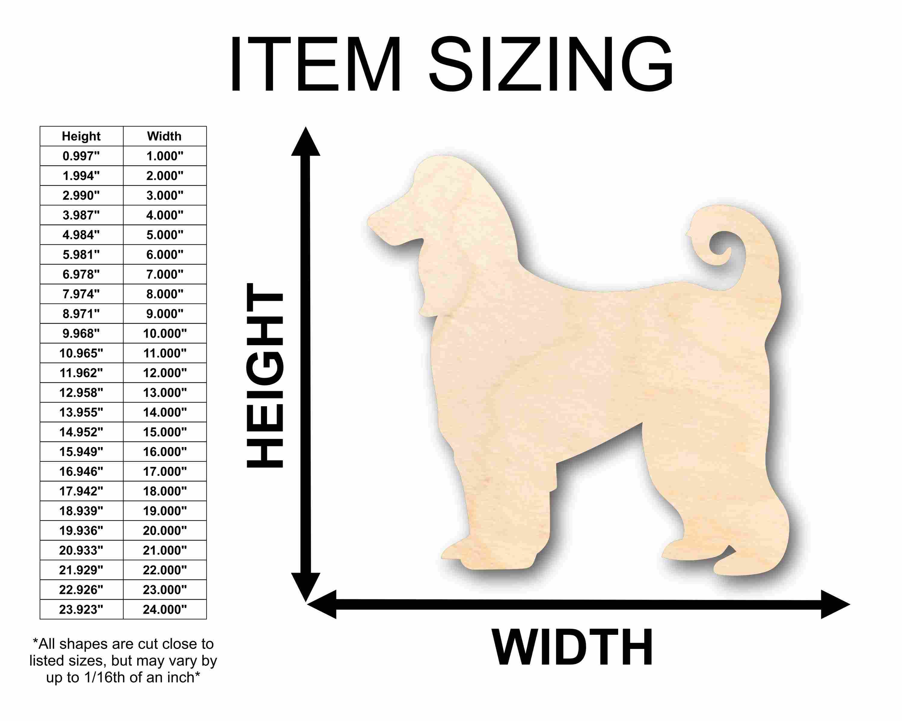 Unfinished wood shapes are available from 3" up to 48" (Some intricate shapes will not be available at smaller sizes)