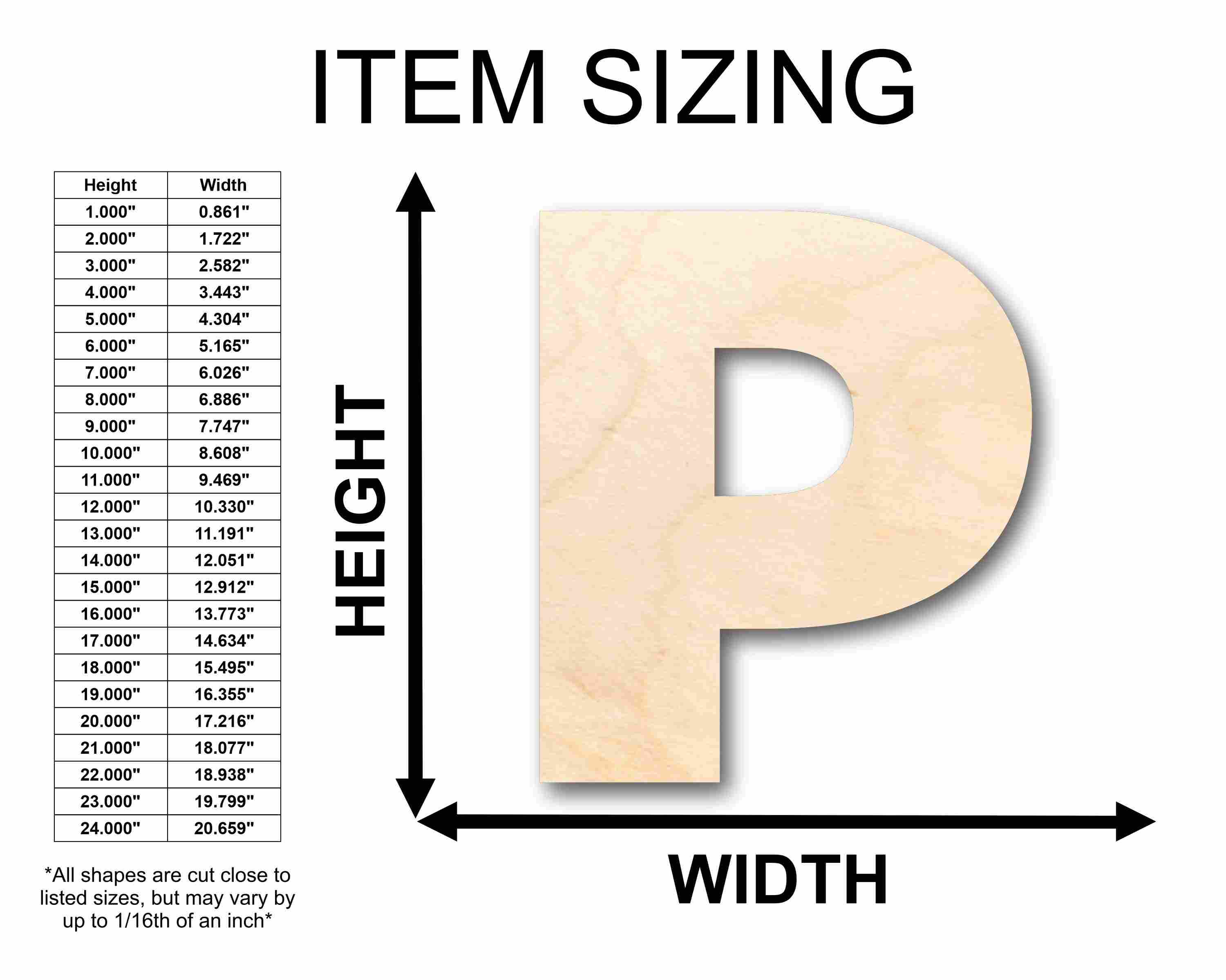 Unfinished Wood Block Letter P - Craft - up to 46" DIY
