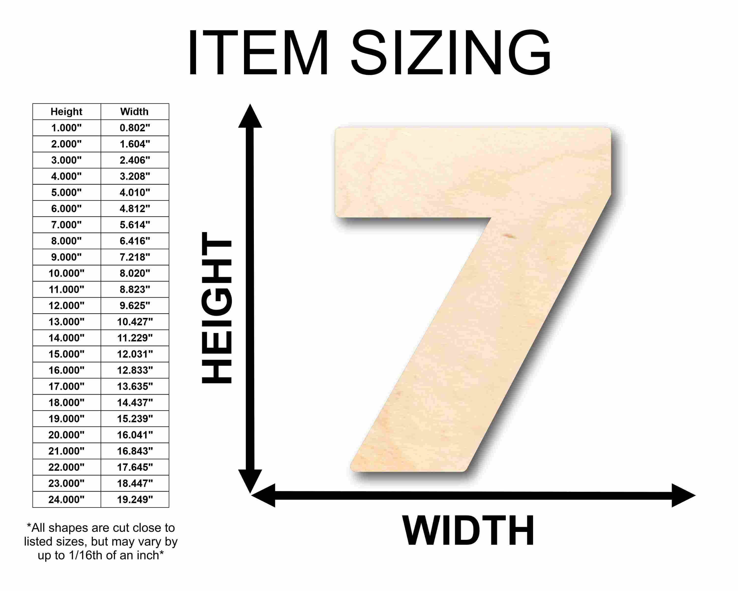 Unfinished Wood Block Number 7 - Craft - up to 46" DIY