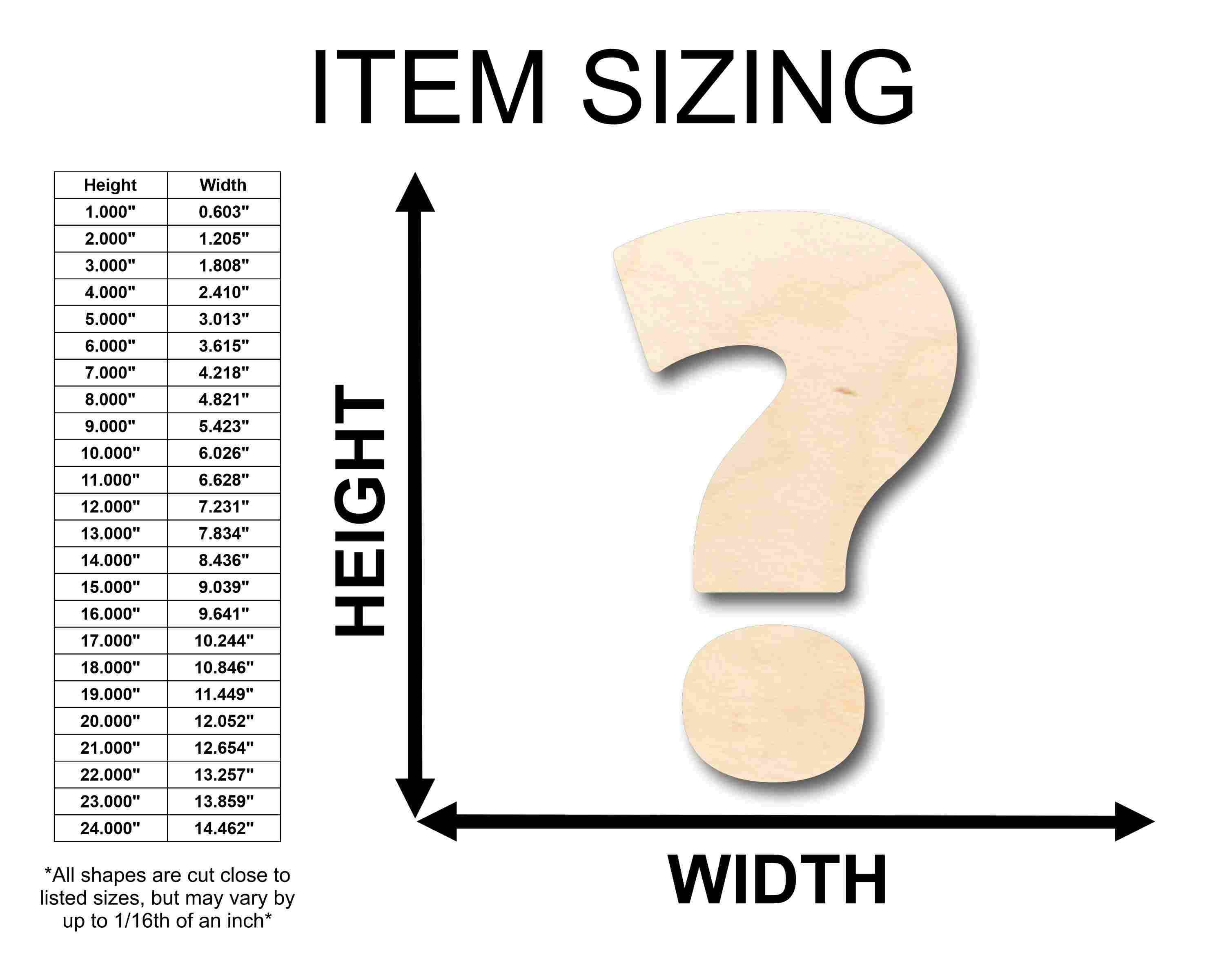 Unfinished Wood Block Symbol Question Mark - Craft - up to 46" DIY